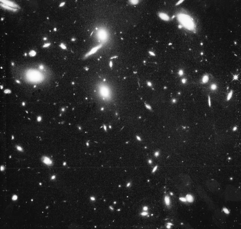 After the first servicing mission to Hubble in December 1993, the newly installed Wide Field and Planetary Camera 2 (WFPC2) imaged the central portion of a remote cluster of galaxies called Abell 851, or CL 0939+4713. At the time this observation was taken, though only of 10 orbits depth in one filter, it was one of the deepest detailed optical images ever taken of the night sky. This observation was a precursor to and helped inspire the later Hubble Deep Fields and Frontier Fields and other similar work. Credit: Alan Dressler (Carnegie Institution) and NASA.